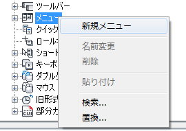 注: コマンドをプルダウン メニューに追加した後、そのコマンドの表示名を変更できます。これにより、プルダウン メニュー項目の表示や、[Alt]キーを使用したキーボード ナビゲーションでアクセスする方法をコントロールすることができます。アクセス方法を定義するには、プルダウン メニューの下位のプルダウン メニュー項目を選択し、[プロパティ]ペインで[名前]プロパティを変更します。