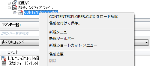 部分 CUIx ファイルがロード解除され、ツリーから除去されます。