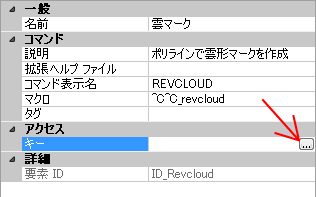 - [プロパティ]ペインで、[キー]ボックス内をクリックしてから[…]ボタンをクリックして、[ショートカット キー]ダイアログ ボックスを開きます。