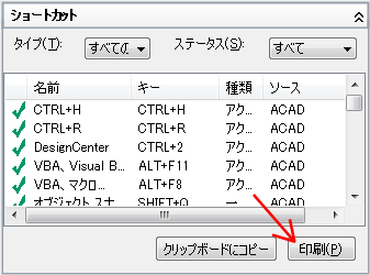 - [ショートカット]ペインで、印刷するキーボード ショートカットのタイプとステータスをフィルタします。