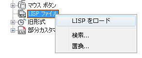 <ファイル名> 内のカスタマイズ]ペインで、[LISP ファイル]ノードを右クリックしします。[LISP をロード]を選択します。