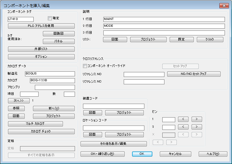 - [コンポーネントを挿入/編集]ダイアログ ボックスの[カタログ データ]領域で、[参照]をクリックします。
