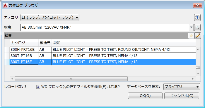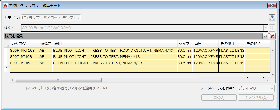 - 検索文字列 AB 30.5mm "120VAC XFMR" を入力し、