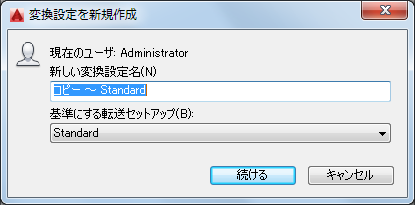 新しく作成する変換設定の基準として使用する既存の変換設定を選択します。