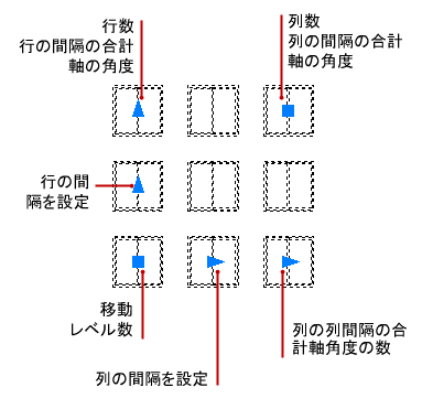 矩形状配列複写では、項目が行、列、レベルのさまざまな組み合わせで配置されます。
