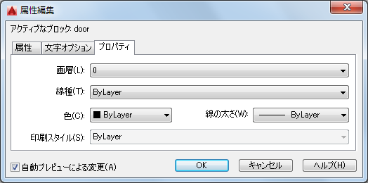 属性を配置する画層と、属性文字の色、線の太さ、線種を定義します。名前の付いた印刷スタイルを使用する図面の場合は、[プロパティ]タブを使用して属性に印刷スタイルを割り当てることができます。