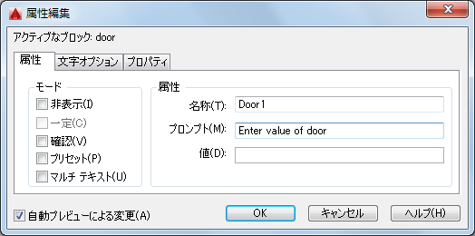 ブロックを挿入するときに属性に割り当てる既定値を設定します。