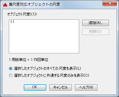 [オブジェクト尺度リスト]に、選択したオブジェクトに対応させる尺度のうち、選択したオブジェクトすべてに共通の尺度のみが表示されるように指定します。