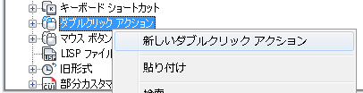 - [カスタマイズ]タブの[ <ファイル名> 内のカスタマイズ]ペインで、[ダブルクリック アクション]ノードを右クリックします。[新しいダブルクリック アクション]を選択します。