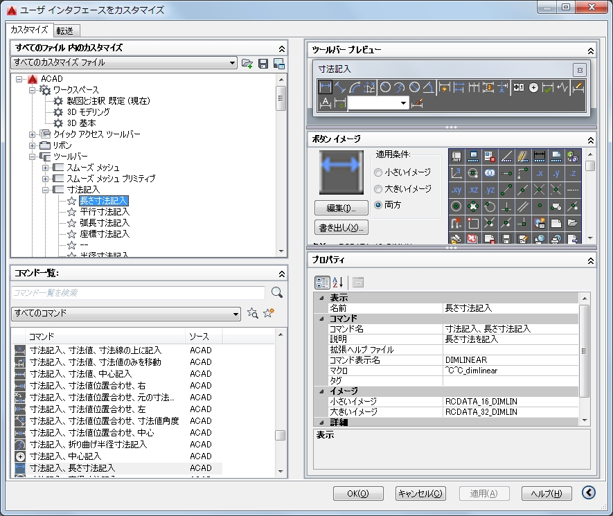 - [大きいイメージ]: ツールバーまたはリボン パネルにコマンドを追加するときに使用する大きいイメージのファイルを指定します。