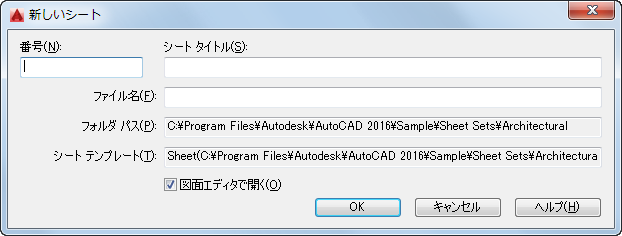 シート番号を指定します。初めてシートを作成する場合は、シート番号を入力しないことをお勧めします。既定では、新しいシートの図面名とレイアウト名は、シート番号とシート タイトルを組み合わせたものになります。