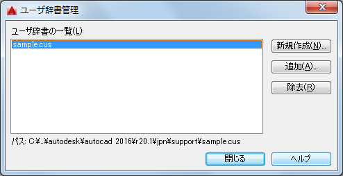 ユーザ辞書の一覧が表示されます。1 度に選択できる辞書は 1 つのみです。