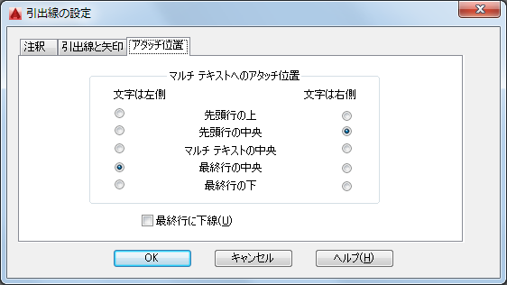 [アタッチ位置]タブ ([引出線の設定]ダイアログ ボックス)