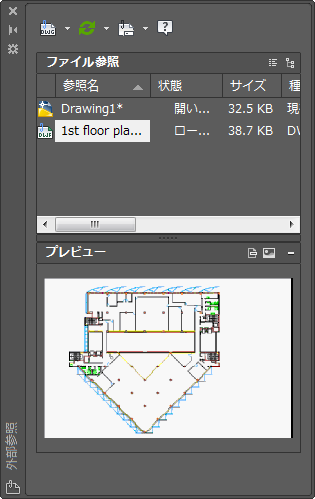 [外部参照]パレットに、図面にアタッチされたアンダーレイに関するファイル固有の情報を表示できます。また、[外部参照]パレットでは、アンダーレイのロード、ロード解除などの操作も実行できます。