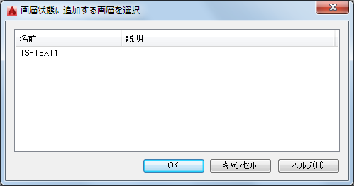 画層状態に追加されていない画層の名前と説明が表示されます。追加する画層を選択し、[OK] をクリックします。
