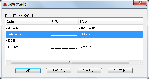 現在の図面にロードされている線種の一覧が表示されます。