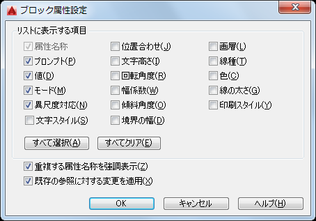 [ブロック属性管理]ダイアログ ボックスの属性リストの表示をコントロールします。