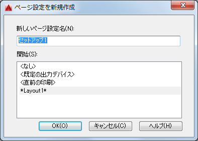 シート セット マネージャから[ページ設定を新規作成]ダイアログ ボックスを開いている場合、優先ページ設定ファイル内の名前の付いたページ設定のみが一覧表示されます。
