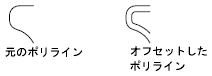 注: コーナーがあるポリラインをオフセットするとき、通過点をコーナーの近くではなく、線分の中心の近くに指定すると最良の結果が得られます。
