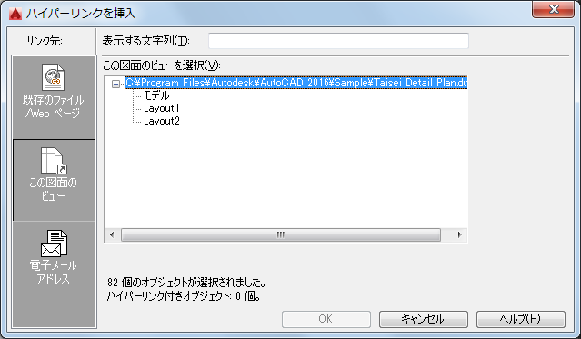 現在の図面内の名前の付いたビューをリンク先として指定します。