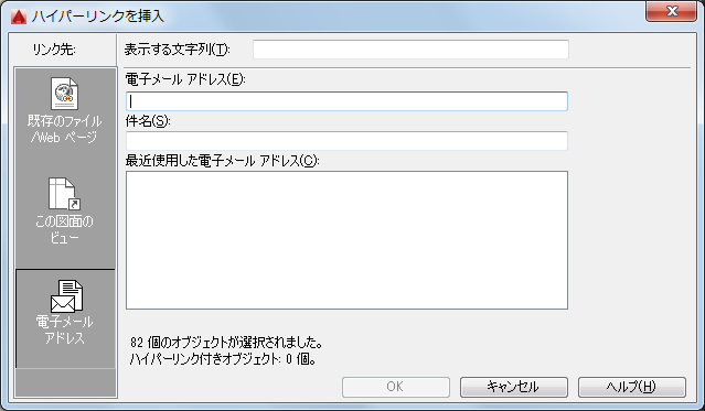最近使用した電子メール アドレスがリストされ、ハイパーリンクに使用するアドレスを選択できます。