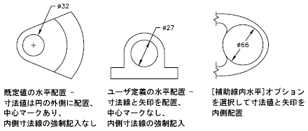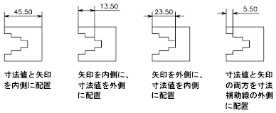 矢印と寸法値がどのように最適に配置されるかを次の図に示します。