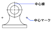 「中心マーク」は、円や円弧の中心を示す小さな十字形です。
