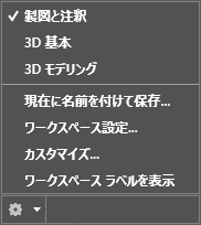 ワークスペースは、個々の作業に特化した作図環境で作業できるようにグループ化して構成されたメニュー、ツールバー、パレット、リボン コントロール パネルのセットです。
