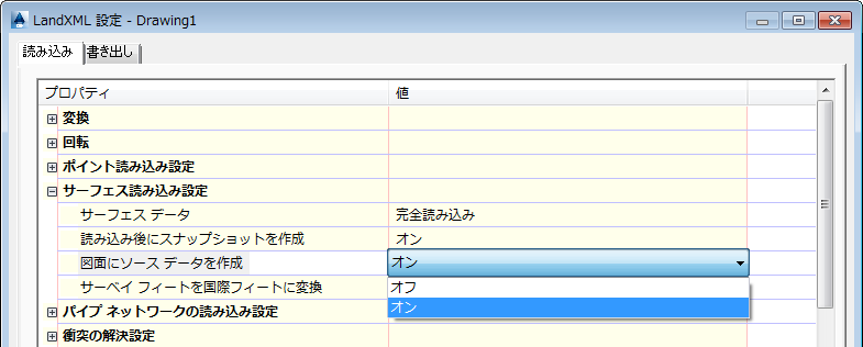 図 2: LandXML のサーフェス読み込み設定