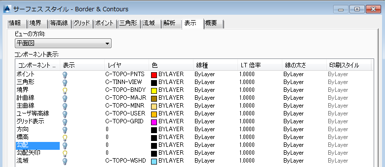 現況地盤等高線スタイルを変更するには