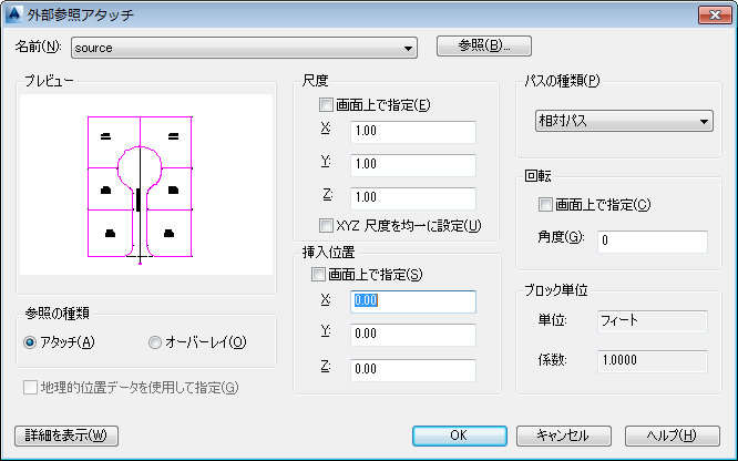[アタッチ] [パスの種類]の推奨値は[相対パス]です。