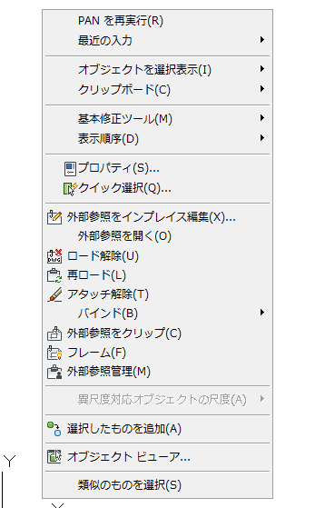 図 16: 外部参照オブジェクトのコンテキスト メニュー