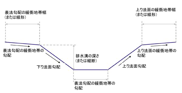 上り法面の緩衝地帯の勾配 | 上り法面の緩衝地帯の勾配 | 数値、正 | 6 ( : 1) |
