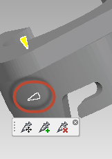 モデルの向きによって、既存の射出位置が見えにくくなる場合があります。[射出位置]タブが開いている場合は、パーツ フィーチャーの背後に隠れている射出位置は、その位置を示す白い輪郭で表示されます。タブを閉じると、射出コーンのすべての表示が非表示になります。
