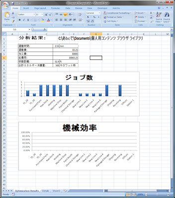 稼働率を含む、設備データの解析に関するスプレッドシート形式のレポートを作成できます。