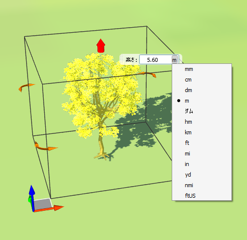 - 現在の測定単位をクリックして別の値を選択し、選択したギズモの[値]ボックスの計測単位を変更します。