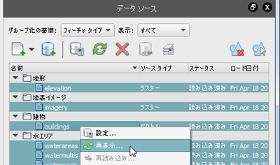 データ ソース パネルが更新され、各データ タイプがフィーチャのカテゴリに追加されます。