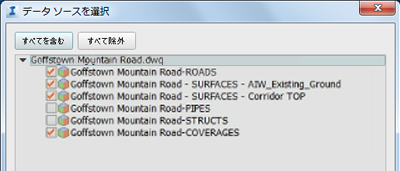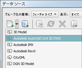 - [Autodesk AutoCAD Civil 3D DWG]を選択してデータ ソースを特定し、[ファイルを選択]パネルを開きます。