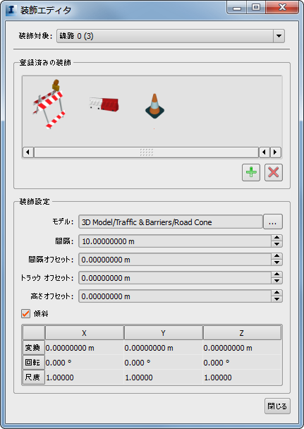 - [装飾エディタ]で、装飾を追加する車線または線路を選択します。