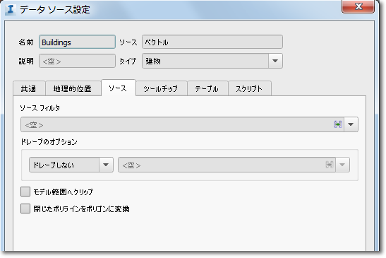 読み込んだデータのドレープのオプションを指定します。ドレープのオプションでは、読み込んだデータと地形の標高との関係を定義します。