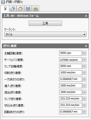 サーフェス上の工具の速度として表される主軸回転速度です。