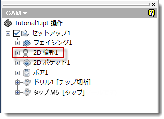 2D 輪郭 1 操作は、南京錠アイコンで示されるように保護されています
