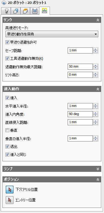 進入が進入からツールパスに移動するときに円滑化される垂直円弧の半径です。