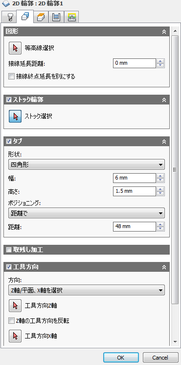 [正の仕上げ代]: 後続の粗取りまたは仕上げ操作で削除すべき、操作後の残りストックの量です。粗取り操作のために、既定値は少量の材料を残します。