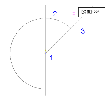 現在の角度単位設定、10進値(45.1111など)、または測量単位(N 45d3'55" Eなど)を使用して角度を入力します。