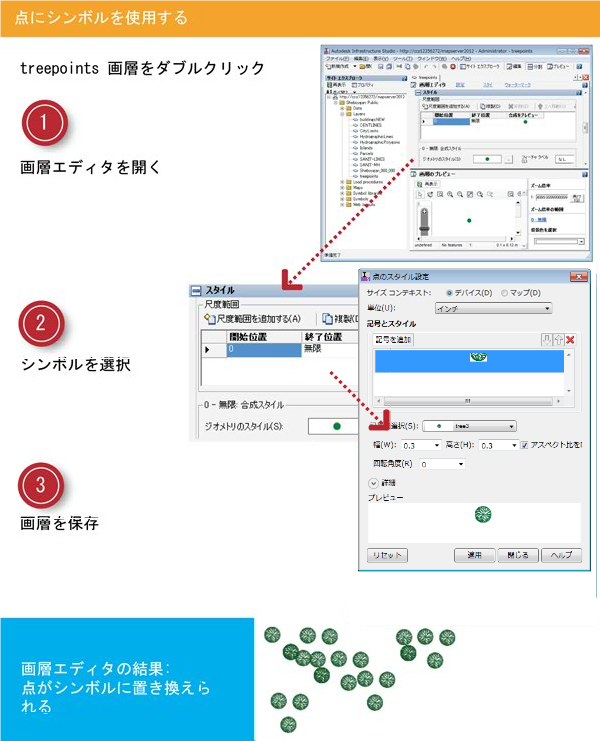 この実習では、点のスタイルをシンボル ライブラリのシンボルに置き換えます。