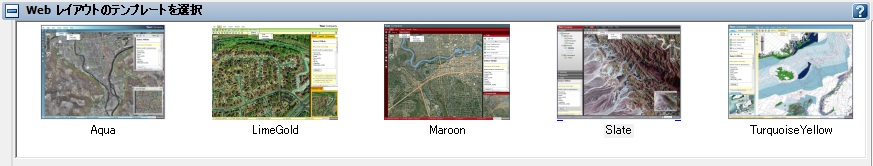 Web レイアウトを作成するには、5 つのテンプレートのいずれか 1 つを選択します。Aqua、LimeGold、またはTurquoiseYellow テンプレートを選択すると、コンテナがタブ形式で表示されます。Maroon または Slate テンプレートを選択すると、コンテナがペイン形式で表示されます。