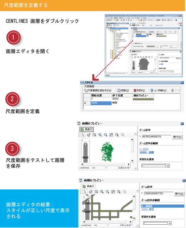 この実習では、特定のスタイルを表示する尺度範囲を指定します。