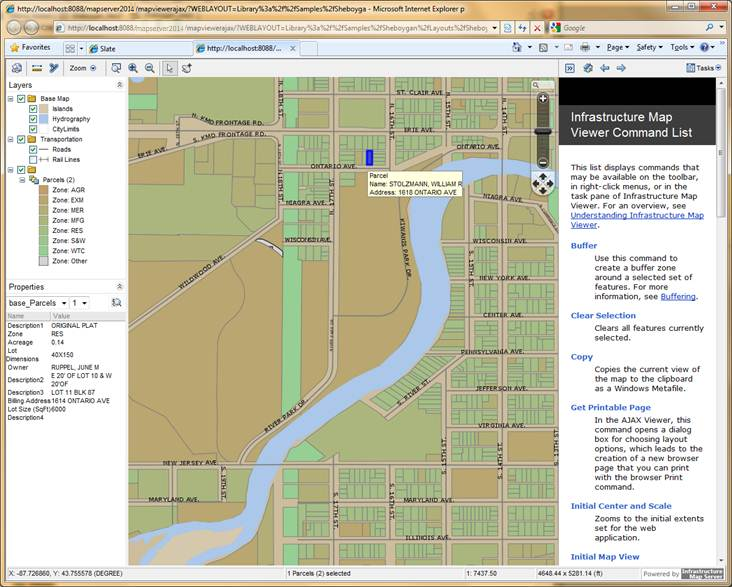 ベーシック レイアウト ビューアはブラウザベースで、、Infrastructure Map Server アプリケーション内にマップ データを表示できます。ビューアは、ズーム、主題設定、フィーチャの選択などの標準的なマッピング機能をサポートする完全なアプリケーションです。これはブラウザ プラグインを必要とせず、Internet Explorer