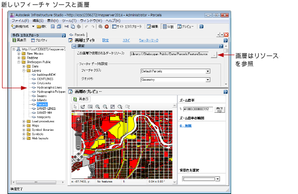 新しいフィーチャ ソースと画層の名前変更は、[サイト エクスプローラ]内で実行できます。